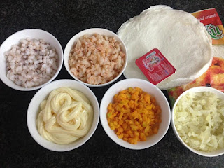 Sau khi xào chín các loại mực, tôm, hành, cà rốt mọi người đợi thật nguội rồi mới trộn mayonaise & sữa đặc. Lưu ý lúc xào cho tí ti muối thôi vì tôm mực mặn rồi. Bây giờ là mùa đông và số lượng em làm ko nhiều nên ko lo mayonaise chảy, nhưng làm nhiều mọi người có thể cho ngăn lạnh lấy ra rồi mới cuốn dần ko nó dễ chảy lắm. cái hỗn hợp này ăn vã cũng ngon í. em thì cuốn còn con em em thì xúc 1 bát con ngồi ăn tì tì
