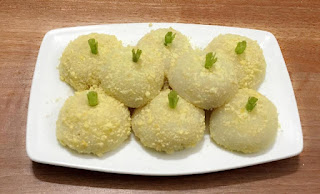 – đỗ xanh 200g ngâm nc ấm 1h hấp chín, tán nhuyễn 2/3 với đường, cho thêm chút dừa nào sợi.1/3 còn lại giã cho mịn để lăn bánh sau khi hấp bánh
