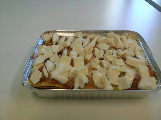 – Sau khi xếp được lá mì đầu tiên thì bạn bắt đầu cho nhân bò sốt cà lên miếng Mì rồi rắc thêm phô mai Parmesan (các bạn chú ý nên cho lớp nhân dày một chút cho ngon và tạo độ mềm mại cho bánh nhen (vì khi nướng nước sốt trong nhân sẽ thấm qua các lớp mì làm mì thấm sốt và mềm mại hơn)