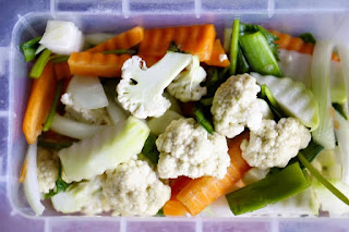 b4: cho tất cả các loại rau củ đã sơ chế trộn đều cùng với lượng muối đường còn lại.