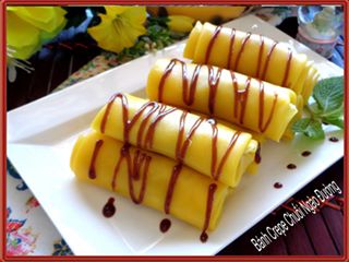 Trình bày: Bánh crepe cho ra dĩa, chạy vài đường chocolate lên bánh cho đẹp. Món này dùng tráng miệng hay đãi khách thì rất tuyệt.